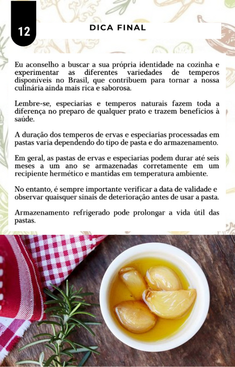 Eu aconselho a buscar a sua própria identidade na cozinha e experimentar as diferentes variedades de temperos disponíveis no Brasil, que contribuem para tornar a nossa culinária ainda mais rica e saborosa.